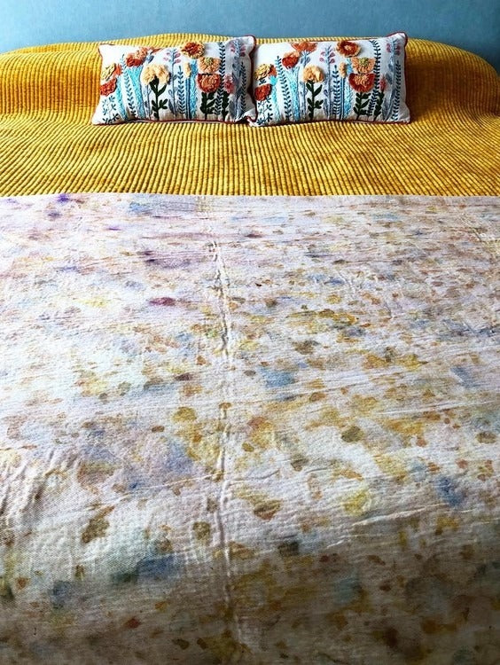 This one-of-a-kind, naturally dyed garment is colored using plant-based dyes in a palette of deep browns, forest greens, soft purples, earthy pinks, and muted blues — created through a mindful process of slow botanical dyeing and eco printing. Each piece is hand-dyed and printed using wild and cultivated plants, such as eucalyptus, barbatimão bark, guava leaves, red rose petals, indigo, wild rice, and more. The final tone of every item is shaped by seasonal cycles, natural chemistry, and the living energy of the plants used in the dye bath. Crafted from upcycled and natural fabrics — including cotton, linen, silk, viscose, satin, and polyester — this garment gives new life to high-quality second-hand textiles through a sustainable, zero-waste approach. Whether you're searching for a unique naturally dyed dress, a botanically printed shirt, or a handcrafted slow fashion piece, this wearable work of art blends sustainability, style, and storytelling. 🌱 Sustainably sourced & hand-dyed 🪡 Made from upcycled and natural materials 🎨 Eco-printed with wild and cultivated plants 🌍 Each piece is one of a kind No two garments are alike — every color, imprint, and pattern tells a story of nature, place, and process. It's a piece of the Earth, ready to be worn with intention.